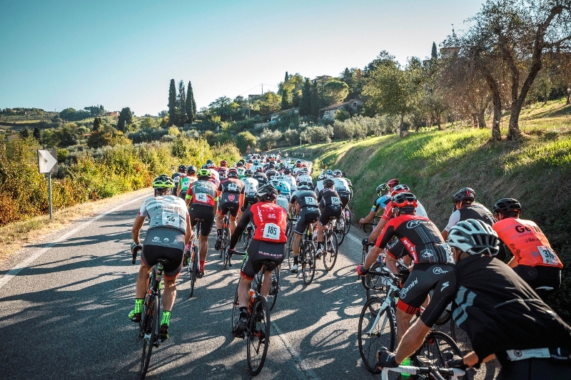 La Granfondo del Gallo Nero: i due percorsi, la Granfondo (135 km, dislivello 2621 m) e la Mediofondo (83 km, dislivello 1526 m), offrono scorci di paesaggi che sono diventati icona della bellezza italiana: partiranno entrambi alle ore 9 da Radda in Chianti, borgo medioevale, dalla cui cinta muraria si darà il via, fino a Greve in Chianti, città d’origine del navigatore Giovanni da Verrazzano, passando attraverso i vigneti della Conca d’Oro di Panzano in Chianti, per poi attraversare San Casciano e scendere verso Castellina in Chianti, eletta da Michelangelo Buonarroti a buon retiro. Il percorso lungo si addentrerà anche nella parte sud del territorio, tra distese di vigneti e salite mozzafiato come quelle di San Regolo e di Castagnoli. Entrambi i percorsi sono caratterizzati da un susseguirsi di saliscendi, senza vere e proprie scalate tecniche, permettendo di godere del paesaggio unico nel suo momento di massima espressione, la fine dell’estate. Quattro i ristori che cadenzano il percorso: San Casciano in Val di Pesa km 42, San Donato in Poggio Km 60, Radda in Chianti km 86, Castagnoli km 116, in collaborazione con le associazioni locali.