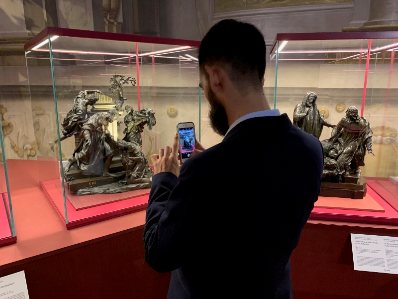 Di Soldani Benzi, maestro straordinario e versatile, si può ammirare il bronzo con l’incontro tenerissimo tra Gesù bambino e San Giovannino; e ancora confrontare la sua versione del Fauno danzante con quella di Foggini e quella realizzata in porcellana di Doccia: si vuole infatti ricordare l’importanza della Manifattura locale di porcellane, nel preservare e tramandare, in modo seriale ma sempre con risultati altissimi, le forme e i modelli di questa grande stagione scultorea fiorentina. La tecnica eccelsa raggiunta dai maestri fiorentini del bronzo si può ancora apprezzare negli ostensori, nei meravigliosi e ricchissimi oggetti sacri, e nei due Cristi Crocifissi del Giambologna e di Pietro Tacca - il celeberrimo autore del Porcellino nonché allievo prediletto del Giambologna. I visitatori diventeranno familiari con i nomi di Giuseppe Piamontini, Giovacchino Fortini, Antonio Montauti, Agostino Cornacchini, Lorenzo Merlini, Girolamo Tacciati, Giovan Camillo Cateni e Pietro Cipriani, e altri emersi dagli archivi in occasione della mostra, come Francesco Formigli, figura fino ad oggi poco nota a cui è stato possibile attribuire su base documentaria ben tre opere. Completano l'esposizione la raccolta di 42 disegni di Soldani Benzi, uno straordinario blocco di fogli acquistati dagli Uffizi solo un anno e mezzo fa, e alcuni dipinti, tra i quali anche tele del Dandini e del Bimbi, posti in dialogo con la plasticità delle sculture.