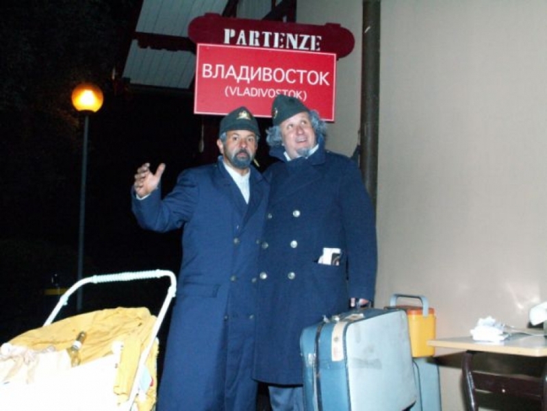 Fonti attendibili affermano con sicurezza che l’anno passato un gruppo di turisti russi, avvicinandosi alla fermata della funicolare di Montenero alto, leggendo il nome della loro capitale all’entrata, si sia lasciato prendere da un attacco di nostalgia e che abbia costretto i poveri Andrea Kaemmerle e Claudio Parri ad unirsi a loro in una bevuta collettiva a base di litri di vodka. Fortunatamente, dopo preoccupanti promesse di riportarli con loro in Patria, al sorgere dell’alba li hanno lasciati andar via, e cosi quest’anno per l’ottavo anno consecutivo potranno di nuovo vestire i panni di Slava e Cola, due ferrovieri, compagni ai tempi dell’ex unione sovietica, alle prese con il loro ultimo viaggio prima del pensionamento.
