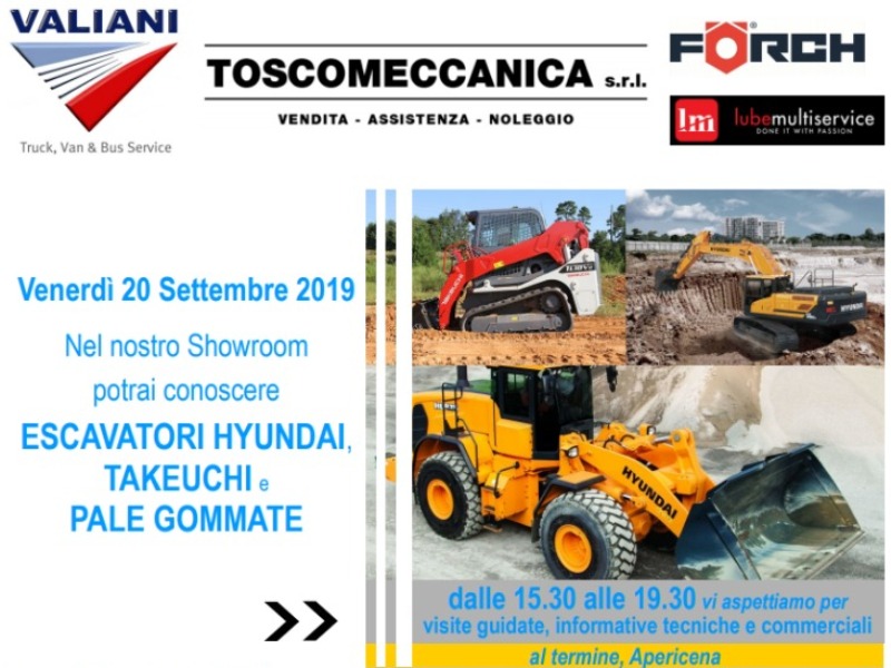 L’evento è stato possibile grazie al coinvolgimento, oltre che di Toscomeccanica srl, anche di realtà qualificate come Forch srl e Lubemultiservice srl, il cui personale, insieme a quello di Valiani sarà disponibile a dare tutte le informazioni necessarie e a fare “visite guidate” all’interno dell’azienda. Infatti nello Showroom, oltre ai mezzi, saranno allestiti anche degli spazi con materiale illustrativo ed informativo.