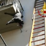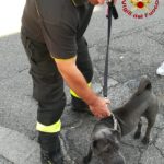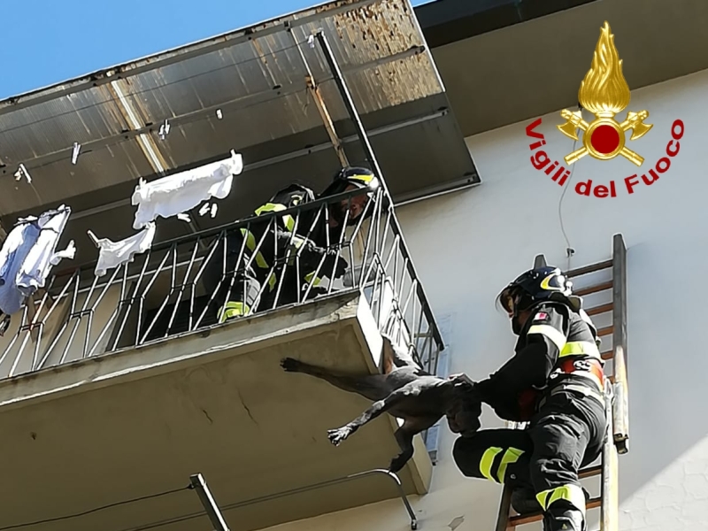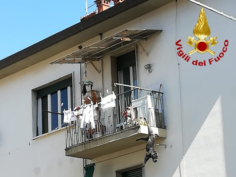 Un salvataggio incredibile quello avvenuto a Montevarchi questa mattina, in via Don Minzoni. Un cucciolo di cane è rimasto appeso per la zampa destra posteriore alla ringhiera di un terrazzo al terzo piano di un condominio. I vigili del fuoco del locale distaccamento lo hanno raggiunto tramite autoscala perché non era possibile riportarlo in casa dall'interno. La squadra di vigili del fuoco è riuscita nell'intento, portando il cane sano e salvo. Solo una piccola ferita alla zampa, niente in confronto al pericolo a cui questo cucciolo si è esposto.