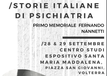 A Volterra presso il Centro Studi Santa Maria Maddalena, in Via Persio Flacco 2, sabato 28 e domenica 29 settembre 2019, si terrà il convegno Storie italiane di psichiatria. Primo memoriale Fernando Nannetti, organizzata da Inclusione Graffio e Parola Onlus e Associazione Cara Milena e promossa dalla Fondazione Cassa di risparmio di Volterra.