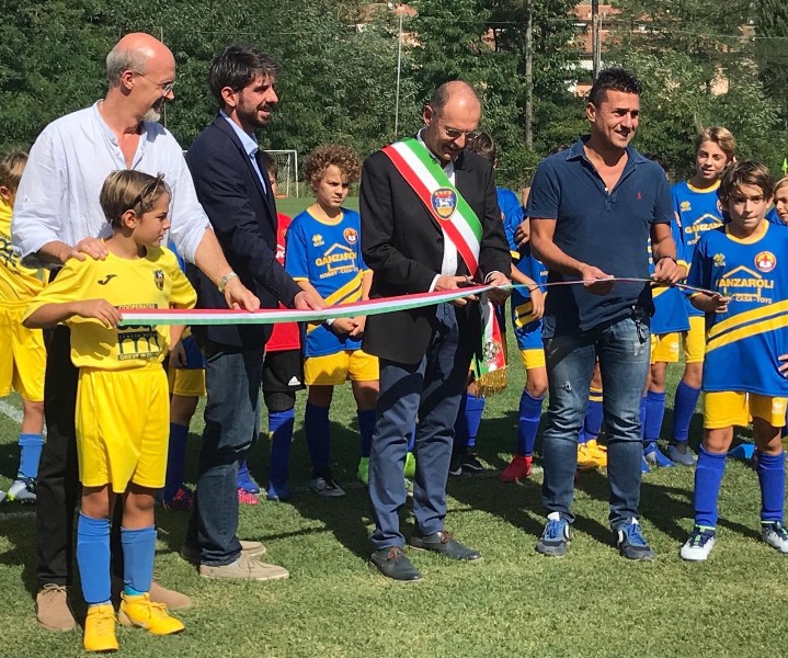I primi atleti a giocare sul nuovo manto erboso dello stadio comunale di Greve in Chianti saranno i calciatori della Asd Grevigiana che domani, domenica 22 settembre, disputeranno la loro prima partita casalinga contro l’Incisa Ideal Club. Questo pomeriggio, invece, con un giorno di anticipo rispetto alla data fissata, per via delle previsioni meteo in graduale peggioramento, si è tenuto il taglio del nastro con il sindaco Paolo Sottani, gli assessori Paolo Stecchi e Lorenzo Lotti insieme alle squadre dei più piccoli che hanno battezzato il campo in divisa sportiva.