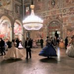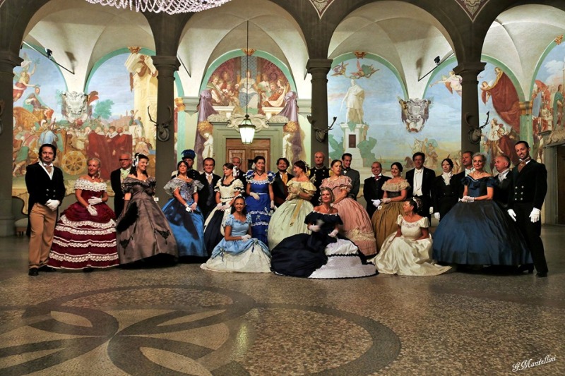 Le danze ottocentesche della Compagnia della Bizzarria d’Amore (associazione con sede a Fucecchio) ancora protagoniste a Firenze in occasione dell’apertura serale straordinaria di Villa la Petraia per le Giornate Europee del Patrimonio. In collaborazione con il Polo Museale della Toscana, nello splendido cortile centrale della Villa affrescato dai Medici, i visitatori si sono potuti immergere nelle magiche atmosfere ottocentesche ammirando lo spettacolo “Le Carnet des Dames” in cui i ballerini, in costumi d’epoca, hanno eseguito valzer, quadriglie, mazurke e contraddanze. Al termine dello spettacolo la Compagnia ha poi coinvolto il pubblico in un Gran Ballo a passo di valzer e galop che ha permesso ai presenti di trasformarsi da semplici spettatori ad attori stessi della serata, offrendo infine a tutti gli intervenuti un piccolo libretto con curiosità storiche relative alle danze e agli usi e costumi dell’800. Un Gran Ballo molto apprezzato sia dal pubblico che dal personale della Villa, peraltro in un salone che, nato appositamente per balli e feste ottocentesche, ha rappresentato la cornice perfetta per un evento del genere.