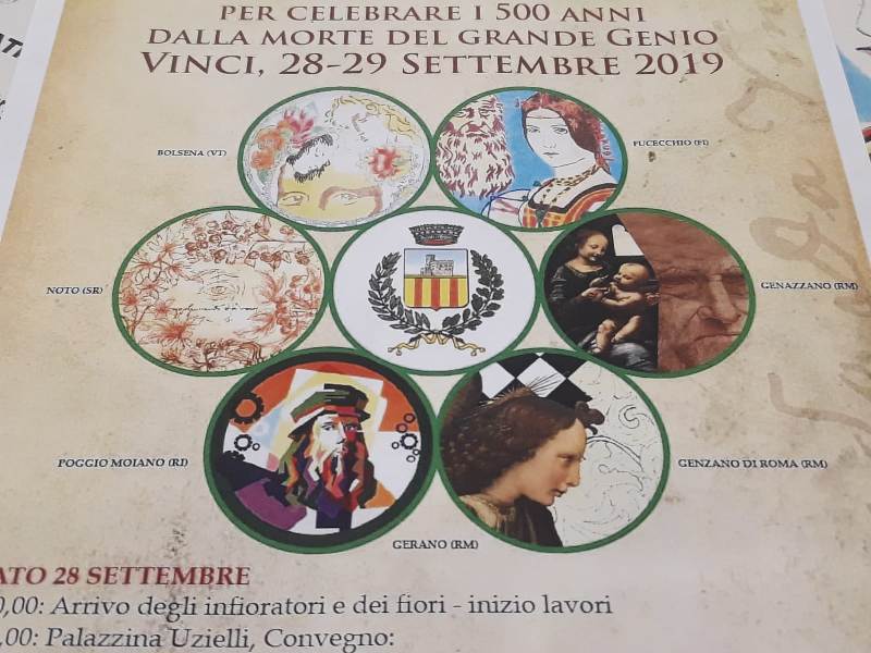 È ancora tempo per celebrare Leonardo da Vinci, nell'anniversario dei 500 anni della morte. Sabato 28 e domenica 29 settembre si terrà a Vinci in piazza del Castello una speciale Infiorata dedicata al Genio, che vedrà in prima fila pure la città di Fucecchio. Saranno i comuni dell'Associazione Nazionale Città dell'Infiorata i protagonisti della due giorni: oltre a Fucecchio e Vinci anche Bolsena (VT), Noto (SR), Poggio Moriano (RI), Gerano, Genzano e Genazzano (Roma).