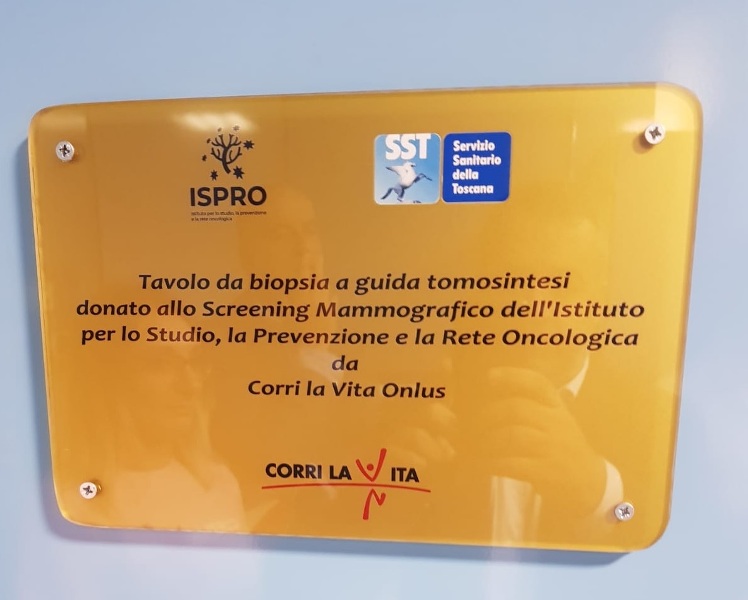 Corri la Vita Onlus ha donato al Servizio di Screening Mammografico dell’Istituto per lo Studio, la Prevenzione e la Rete Oncologica di Firenze, una innovativa attrezzatura per la diagnosi precoce del tumore alla mammella, per un valore di 200mila euro; la cerimonia di consegna è avvenuta stamani alla presenza di Bona Frescobaldi, Presidente di Corri la Vita e di Gianni Amunni, direttore generale di ISPRO.