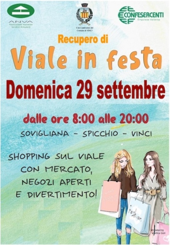 Quasi 100 banchi di abbigliamento, artigianato e gastronomia, tante attività di intrattenimento e negozi aperti, il tutto dalle 8 del mattino fino alle 20. Dopo l’evento, in forma ridotta causa pioggia, andato in scena lo scorso mese di maggio, torna Viale in Festa, la manifestazione dedicata al commercio, organizzata da Comune di Vinci e Confersercenti e giunta alla 15esima edizione, che si svolgerà domenica 29 settembre lungo viale Togliatti a Spicchio-Sovigliana.