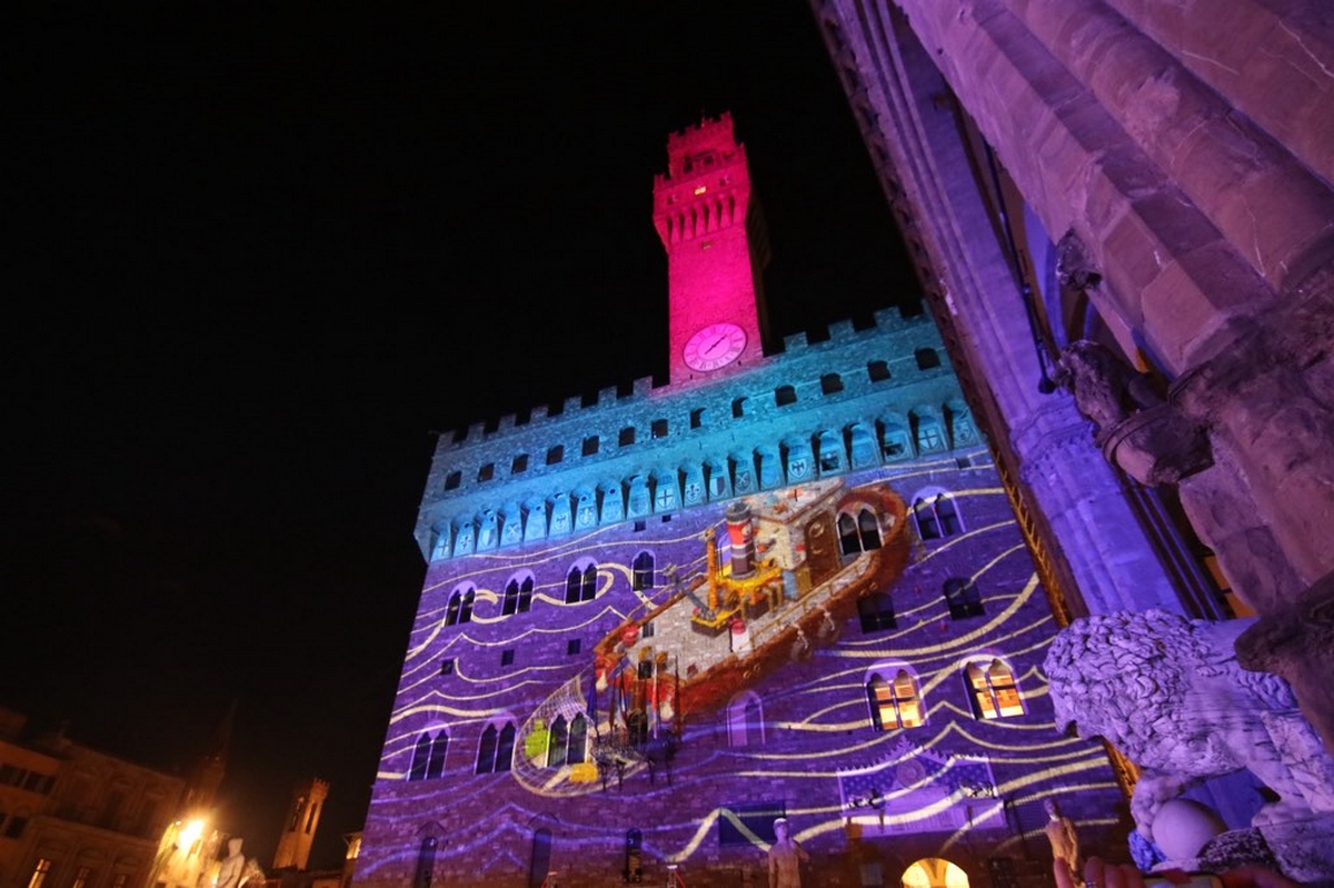 Le immagini del videomapping, infatti, hanno avuto come protagoniste le campagne L’Ambiente non è usa e getta di Unicoop Firenze e Arcipelago Pulito di Regione Toscana, Legambiente ed Unicoop Firenze per pulire il mare dai rifiuti.