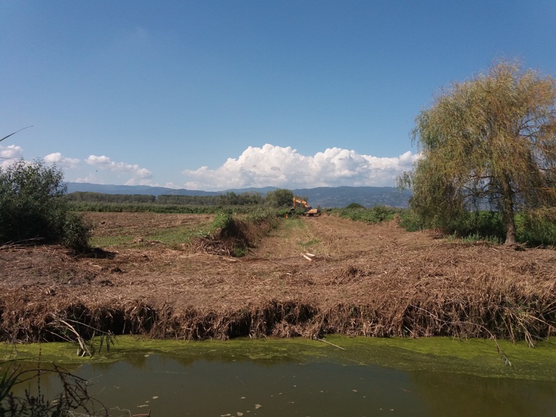 Il grande progetto per la mitigazione del bilancio idrico nel Padule di Fucecchio è giunto al secondo anno e i buoni risultati cominciano ad essere evidenti. Concluse lo scorso anno le attività burocratiche e i saggi per le la verifica di eventuale presenza di ordigni bellici nell’area, nell’estate 2019, e precisamente nell’intervallo di tempo dal 1 luglio al 30 settembre, periodo ampliato rispetto allo scorso anno grazie alla deroga ricevuta dalla Regione Toscana, si è passati all’attività più concreta, quella dello scavo e della rimodellazione degli argini nei due canali esterni al cratere palustre e precisamente del Canale del Capannone ad Ovest e del Canale del Terzo ad Est, nonché del Canaletto che corre centralmente rispetto al cratere. Accanto a queste si sono affiancate le realizzazioni di opere puntuali all’interno dei sottobacini per la regolazione del deflusso delle acque.