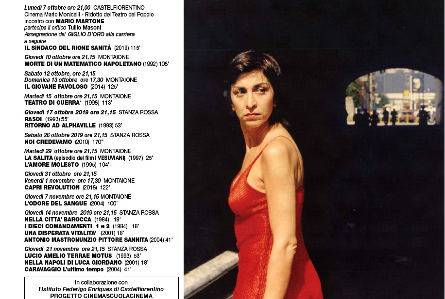La rassegna cinematografia dal titolo “Mario Martone, la scena, il set, il pentagramma” proseguirà poi tra il cinema teatro Scipione Ammirato di Montaione e la Stanza Rossa di Castelfiorentino con la chiusura il 21 novembre. Verranno allestiti nei due spazi altrettante mostre documentarie con manifesti, foto e materiale di film, spettacoli e opere.