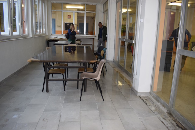 Per quanto riguarda la scuola media i problemi hanno riguardato sia la parte 'vecchia' dell'edificio, sia quella oggetto di recenti lavori di ristrutturazione e miglioramento sismico. Dal controsoffitto e dagli infissi è colata acqua all'interno di un laboratorio didattico, nella sala adibita a mensa delle scuole medie e in palestra. Al termine del sopralluogo sindaco e ufficio tecnico hanno stabilito di preparare un verbale di contestazione dei lavori appena effettuati: in mattinata è stato convocato il direttore dei lavori con la ditta per sistemare i danni verificati. “Sembrerebbe – ha detto il sindaco Alberto Coluccini – che i lavori non siano stati fatti a regola d'arte. Abbiamo constato anche che nell'atrio esterno l'asfalto è sconnesso e pieno di buche. E che nel costruire le due 'vele' a supporto dell'edificio è stato spaccato un marciapiede: un lavoro lasciato a metà con mattonelle sporgenti e pericolose per i bambini”.