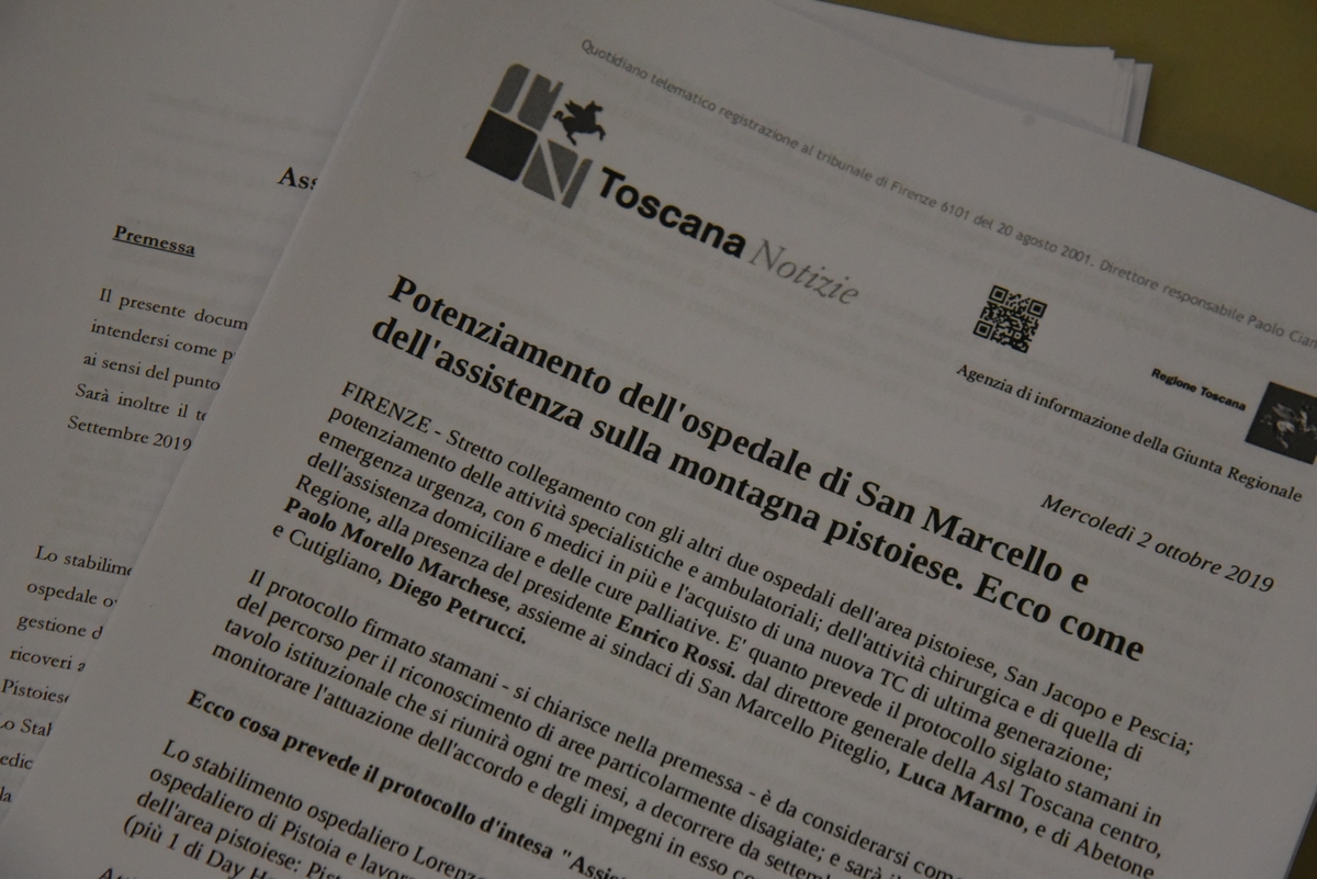 Stretto collegamento con gli altri due ospedali dell'area pistoiese, San Jacopo e Pescia; potenziamento delle attività specialistiche e ambulatoriali; dell'attività chirurgica e di quella di emergenza urgenza, con 6 medici in più e l'acquisto di una nuova TC di ultima generazione; dell'assistenza domiciliare e delle cure palliative. E' quanto prevede il protocollo siglato stamani in Regione, alla presenza dell'assessore alla presidenza Vittorio Bugli. dal direttore generale della Asl Toscana centro, Paolo Morello Marchese, assieme ai sindaci di San Marcello Piteglio, Luca Marmo, e di Abetone e Cutigliano, Diego Petrucci.