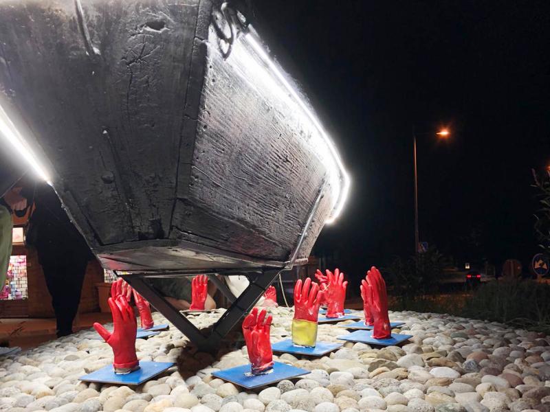 Mani che spuntano dal terreno, corpi immaginari che annegano nel selciato e che sembrano chiedere soccorso al barchino dei renaioli di Spicchio, sulla rotatoria in Viale Togliatti. L'inquietante scena è stata allestita ieri notte e il riferimento sembra chiaro: oggi, infatti, ricorre la Giornata della Memoria e dell’Accoglienza, una data simbolica per commemorare le vittime del naufragio del 2013 al largo delle coste di Lampedusa, ma soprattutto per ricordare tutti i migranti che continuano a morire nel Mar Mediterraneo nella speranza di trovare un futuro migliore lontani da casa. Il flash mob è stato rivendicato da Mediterranea Saving Humans Empolese Valdelsa: "Un’installazione dedicata ai morti in mare - si legge in una nota - , al ricordo di chi non è sopravvisuto ad un viaggio che avrebbe potuto e dovuto regalargli un domani migliore"