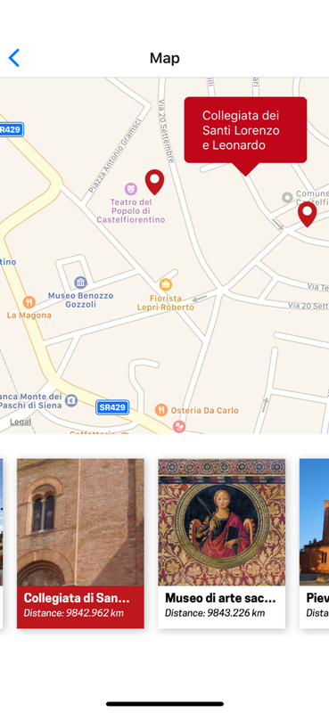 In prossimità dei luoghi più importanti, grazie alla funzione di localizzazione, il visitatore riceverà le notifiche dei contenuti multimediali derivanti da “Beacon” o da “Geofence”. Sul telefono si attiverà una finestra pop-up con il contenuto proposto e si potrà̀ scegliere di attivate i contenuti multimediali dedicati a quel luogo oppure ignorare il suggerimento. A soddisfare le curiosità del visitatore, gallerie di immagini in alta risoluzione, centinaia di opere d’arte fino agli affreschi di Benozzo Gozzoli visibili in modalità nuova, audio-video-guide inclusive nella Lingua dei Segni Italiana (LIS) fruibili da tutti, approfondimenti e video a 360 gradi ottimizzandoli opportunamente per la visione che si svolge a schermo intero, sia navigando l’immagine con tocco del dito, sia navigando l’immagine muovendo il dispositivo.