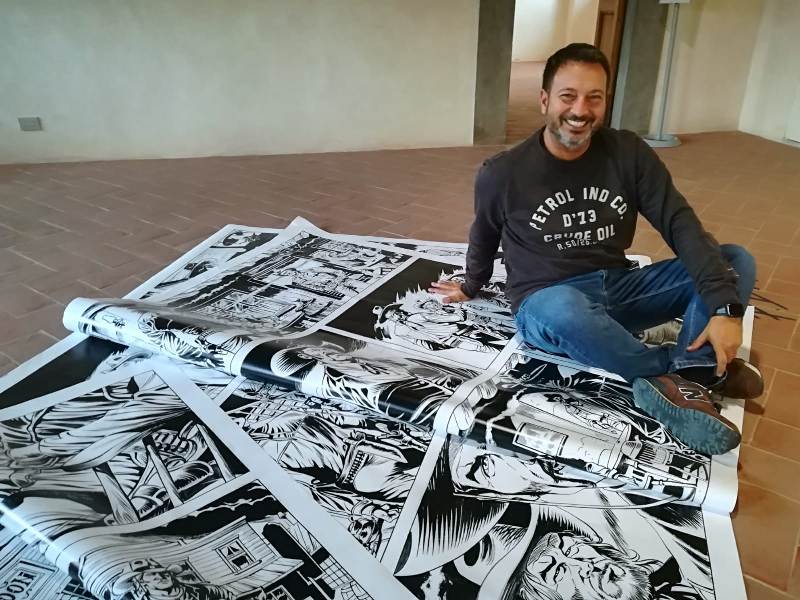 Una strada che si intreccia con la passione, il talento di un fumettista emergente, Fabio D’Agata, romano, 47 anni, enfant prodige dell’illustrazione dall’età di 10 anni. Lui che rimane estraneo alla cultura smart degli strumenti digitali e della tecnologia multimediale, si fa nuovo interprete della nona arte disegnando esclusivamente a matita e china. Al disegnatore, new entry in casa Bonelli, è stata affidata la realizzazione della nuova storia di Tex Magazine che uscirà nel 2021. Alcune delle tavole inedite della nuova pubblicazione, insieme ad una quarantina di lavori realizzati negli ultimi 3 anni, saranno esposti a Palazzo Malaspina, nel cuore medievale di San Donato in Poggio, nel Comune di Barberino Tavarnelle.