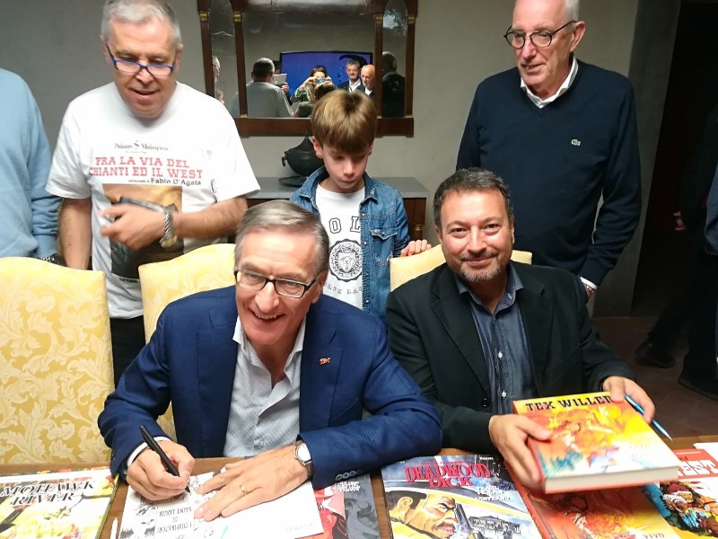 Conoscere e riscoprire Tex a Palazzo Malaspina, nel tratto di due grandi disegnatori del fumetto italiano, Fabio D’Agata e Fabio Civitelli, è stata un’emozione indescrivibile per tutte le età. Per gli appassionati incalliti, per i lettori instancabili che dall’adolescenza custodiscono centinaia di fumetti nella biblioteca di famiglia, per i ragazzi che si avvicinano al fumetto anche da disegnatori in erba e che sognano di diventare grandi maestri dell’illustrazione. Una mostra straordinaria che parla del passato di Tex, 71 anni sonati, alla guida di avventure e imprese eroiche tra le terre dell’Arizona, e si proietta nel futuro in uno scenario paesaggistico altrettanto suggestivo, la campagna chiantigiana. Con il talento di Fabio D’Agata, new entry di casa Bonelli, al quale la società editrice, la più nota nel mondo per la produzione delle collane fumettistiche italiane, ha affidato la creazione delle tavole per la nuova storia di Tex, in uscita nel 2021. Sono questi alcuni dei tesori inediti che la mostra “Fra la via del Chianti ed il West”, organizzata dall’ufficio Cultura dell’Unione comunale del Chianti fiorentino, ospita fino al 1 dicembre dedicando una personale al fumettista Fabio D’Agata con un’antologica dei suoi lavori realizzati negli ultimi tre anni.