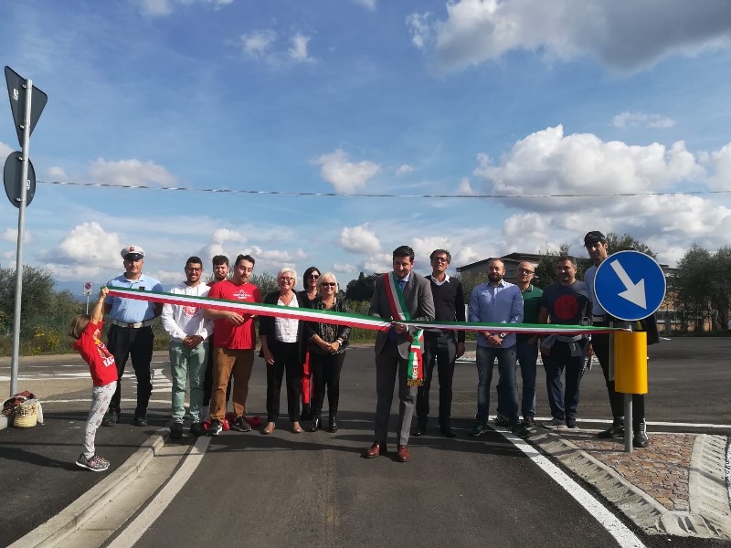Taglio del nastro ‘sportivo’ per via Montopolo, la nuova bretella realizzata dal Comune di San Casciano che permette di collegare via Montopolo a viale Sandro Pertini. Realizzata con l’obiettivo di migliorare la fruibilità dell’area di accesso al complesso della scuola secondaria di primo grado ed in particolare alla palestra comunale, la nuova viabilità è stata inaugurata dal sindaco Roberto Ciappi, dagli assessori Elisabetta Masti e Maura Masini, alla presenza di alcuni consiglieri comunali, Stefania Aiazzi e Francesco Guarducci, e delle società sportive sancascianesi: Alessandro Lazzerini per l’Asd Azzurra Pallavolo, Davide Borghi per la Basket San Casciano Asd, Alessandro Filipponi per l’Asd Shin Do Kan. All’inaugurazione ha preso parte anche l’ex sindaco Massimiliano Pescini.