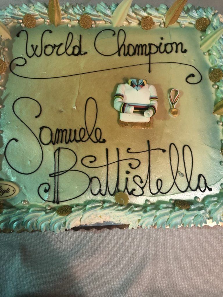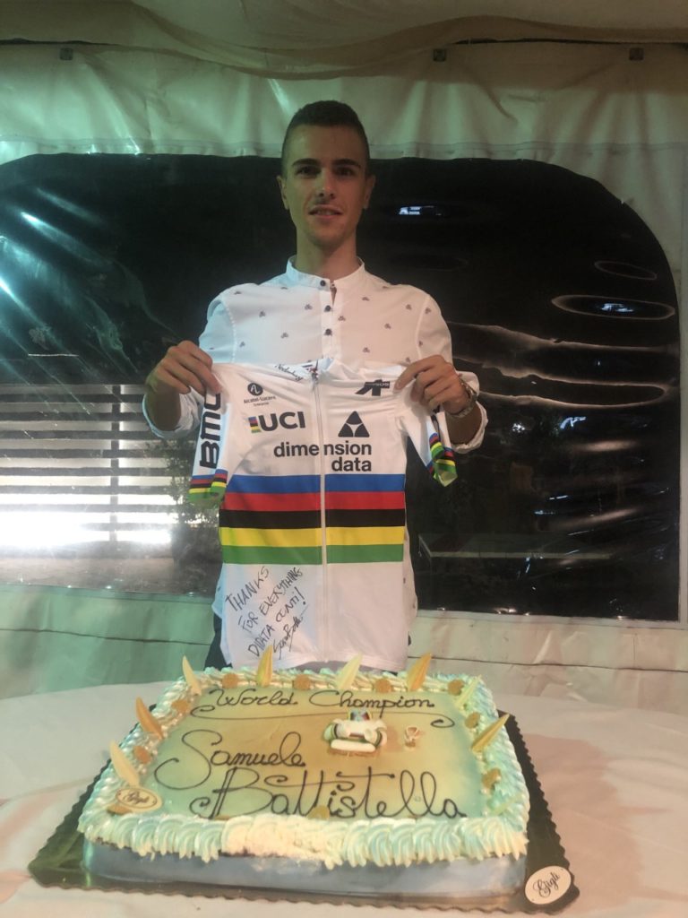 Cerreto Guidi festeggia il nuovo campione del mondo di ciclismo Under 23 Samuel Battistella, membro della squadra sud-africana Dimension Data per Qhubeka che ha il suo quartier generale a Lucca.