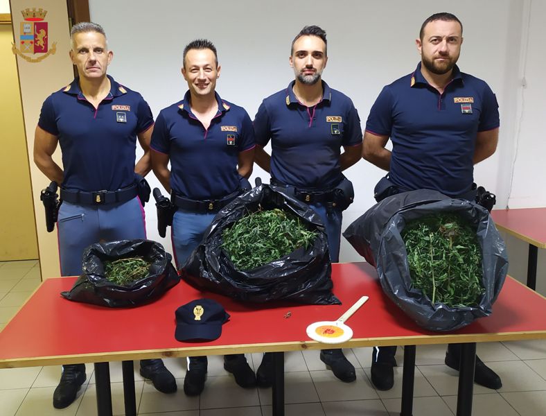 Gli investigatori hanno perquisito tutti, rinvenendo nel bagagliaio della Opel 4 sacchi neri, di quelli usati per la pattumiera, pieni zeppi di piante di marijuana, sradicate per essere poi essiccate e trarne la droga da piazzare sul mercato. Erano quasi 8 chili di erba che, trattati adeguatamente, avrebbero fruttato ai trafficanti un bel gruzzoletto di soldi. Oltre alle piante i poliziotti hanno recuperato anche quasi 10 grammi della stessa sostanza, già pronta da spacciare.
