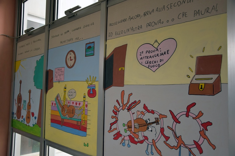 I disegni sono stati realizzati dall’architetto Andrea Marazzi e selezionati da un concorso rivolto alle scuole di Gambassi Terme e Montaione (Firenze), promosso dalla preside, Maria Antonia Lai, e dall’ex assessore all’istruzione del Comune di Gambassi, Tiziana Costa. Le spese per la loro realizzazione sono state sostenute dalla onlus “La Conchiglia – Amici della Chirurgia pediatrica” presieduta sempre dal professor Mario Messina.