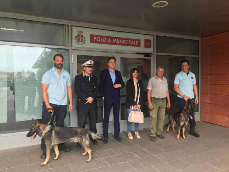 Consegnati oggi mercoledì 9 ottobre i due cani che andranno a costituire, insieme a due agenti della Municipale, il nuovo reparto di Unità Cinofila con funzioni di ricerca di sostanze stupefacenti nelle operazioni di controllo del territorio. Il nuovo nucleo verrà formato per operare in contesti particolarmente critici, seguendo un’attività formativa finalizzata all’integrazione uomo/animale, che prevede sia la fase di addestramento dei cani, sia la predisposizione di ogni attività propedeutica al loro impiego, così da sfruttare al meglio il contributo degli animali per lo svolgimento del servizio antidroga. A questo fine i due pastori tedeschi, sono stati forniti dall’allevatore Daniele Barbanera di Angugliano (AN), specializzato nell’addestramento di cani destinati per impieghi di polizia, che svolgerà anche un primo addestramento agli agenti nominati come conduttori dei cani e un servizio di assistenza.
