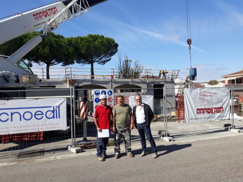 La prefabbricazione in cemento armato con pannelli portanti è fatta con certificazione ministeriale e permette di costruire stabili con altezza fino a quattro livelli, piano interrato compreso. Come spiega Maurizio Milli di RapidCasa "la costruzione è validissima perché si comporta meglio del sistema telaio-cemento armato normale, le tamponature sono parte integrante della struttura. Tutto è legato, ci sono armature sul perimetro che collegano i vari elementi. In pratica il materiale è unico e si muove tutto assieme rispetto a una struttura in laterizio, che rimane rigida".