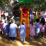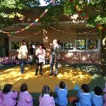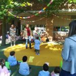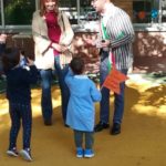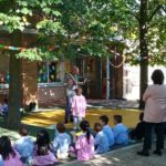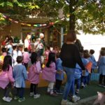 Bambini, insegnanti e amministrazione comunale insieme per festeggiare il nuovo giardino della scuola dell’infanzia “Il Girotondo” di via Trento.