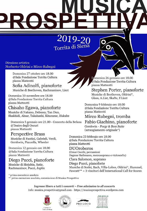Musica Prospettiva 2019-20 sarà presentato in conferenza stampa giovedì 17 ottobre alle 11.00, alla Sala dei Bozzetti presso la ProLoco Torrita in piazza Matteotti a Torrita di Siena.