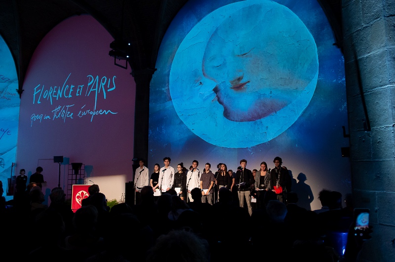 Alla Carta 18-XXI, cui ha dato per primo impulso il Théâtre de la Ville con il suo direttore Emmanuel Demarcy-Mota, hanno aderito altissime personalità, tra cui l’astrofisico Jean Audouze, il Rettore dell’Académie de Paris e della regione accademica dell’Ile-de-France Gilles Pécout e quello dell’Università di Firenze Luigi Dei, il Presidente dell’Accademia di Belle Arti di Firenze Carlo Sisi, il neurobiologo Stefano Mancuso. L’impegno comune per tutti quanti sottoscrivono la Carta 18-XXI è: agir, faire, créer, au maximum de leur capacitée: travailler pour les autres (agire, fare, creare, al massimo delle loro capacità: lavorare per gli altri). Il documento è stato letto da 20 liceali, 10 provenienti dal Liceo Montaigne di Parigi (nell’ambito della stagione franco-italiana dell’Académie de Paris), 10 dal Liceo Linguistico Internazionale Machiavelli-Capponi di Firenze. Sono loro i “18-XXI”, i primi figli del Duemila che si sono cimentati anche in brani di Victor Hugo, Albert Camus, Giacomo Leopardi e Lorenzo de’ Medici, mentre i Nuovi, i diplomati della Scuola per Attori “Orazio Costa” del Teatro della Pergola, hanno letto un passo del Manifesto di Ventotene.