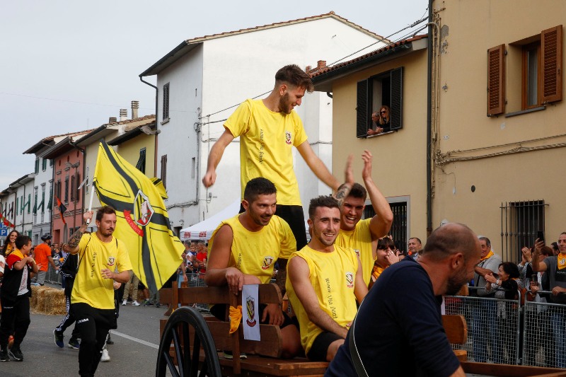 Dal giallo dei barrocci scomparsi al giallonero del rione Via Dante è stato un attimo: il Palio delle Capanne, prima inedita rievocazione storica della frazione montopolese, si è chiusa quest'oggi con la vittoria del tiro del carretto da parte del quartetto in finale contro il rione Bracalone. Questa è stata l'ultima sfida dopo le prime batterie sorteggiate che hanno coinvolto tutte e quattro le contrade: rione la Bua contro rione Bracalone, rione Piazzale contro rione Via Dante. Nell'occasione in mattinata via Nazionale si è colorata con gli stendardi e i costumi storici, con i barrocciai in testa verso la Chiesa di San Giuseppe per la benedizione e poi il sorteggio. Tutti i momenti più salienti sono stati fotografati da Veronica Gentile in esclusiva per gonews.it.