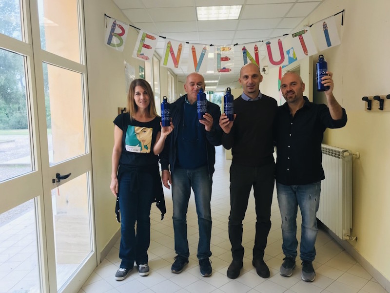 Consegnate nella mattina di lunedì 14 ottobre dal Sindaco Matteo Ferrucci, dall'Assessore al Ciclo dei Rifiuti Juri Filippi, dalle Consigliere Elena Pardini e Serena Tarroni e dal Consigliere di Amministrazione di Acque Rolando Pampaloni, 680 borracce ai bambini e ai ragazzi delle scuole del Comune di Vicopisano, donate da Acque SpA, nell'ottica di un progetto ambientale dell'Amministrazione Comunale che ha nella riduzione e nel riutilizzo della plastica uno degli obiettivi più stringenti.