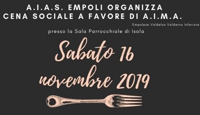 Appuntamento per Sabato 16 Novembre alle ore 20 presso la Sala Parrocchiale di Isola (San Miniato) per la cena organizzata da A.I.A.S. (Associazione Italiana Assistenza Spastici) di Empoli in favore della sezione Empolese Valdelsa-Valdarno inferiore dell’Associazione Italiana Malattia di Alzheimer.