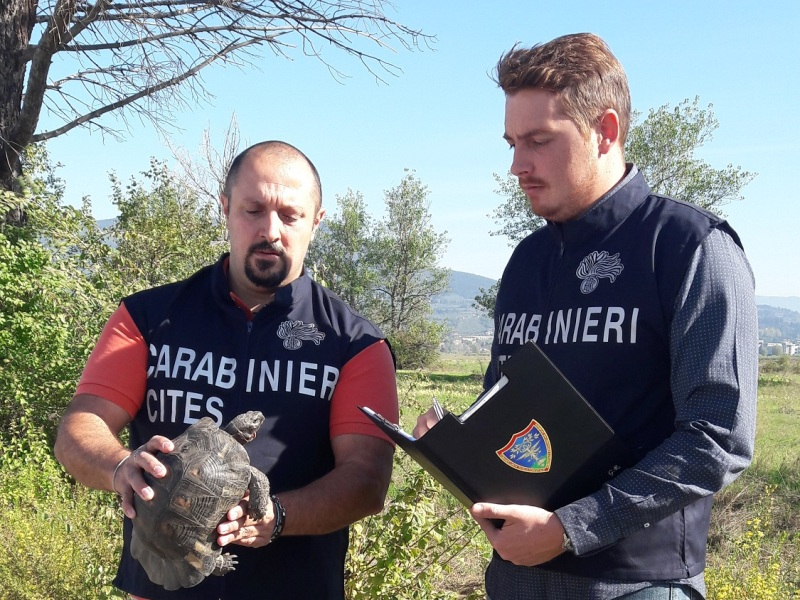 L’esemplare di testuggine terrestre, presumibilmente maschio, è stato rinvenuto a Badia a Settimo nel comune di Scandicci in zona abitata. Il nucleo Cites dei militari di Firenze ha constatato l’assenza di microchip e ha provveduto a presentare denuncia contro ignoti per abbandono di animale e per probabile detenzione dello stesso senza la documentazione prescritta.