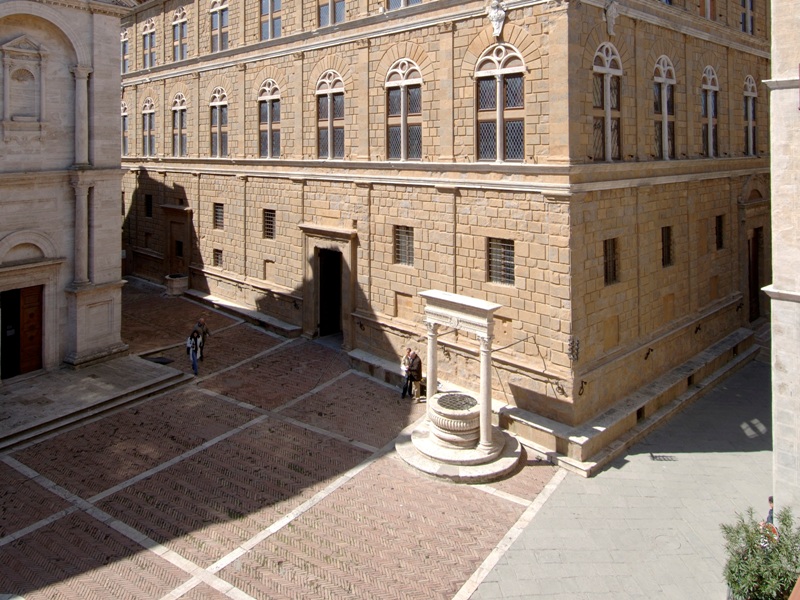 Per volontà di Enea Silvio Piccolomini Pienza sarebbe dovuta diventare un locus amoenus dove praticare l’otium latino, un luogo cioè di tranquillo distacco dalla corte romana dove poter riflettere immersi nella bellezza dell’architettura e del paesaggio, dedicarsi alla cultura e alle arti e trattare con maggiore serenità i rapporti umani, di carattere diplomatico e di ambito privato.