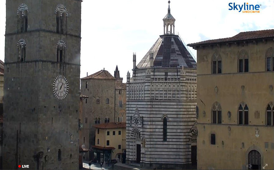 Grazie alle riprese panoramiche effettuate dalla telecamera, da alcuni giorni consultando la home page del sito del Comune (www.comune.pistoia.it) è possibile collegarsi in tempo reale con Pistoia, verificarne direttamente le condizioni meteo e vedere la città da un punto di osservazione privilegiato, piazza del Duomo, fulcro della vita religiosa, politica e giudiziaria della città.