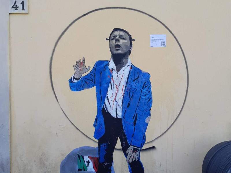 Italia Viva e Renzi zombie: un murales è apparso nella notte nel piazzale di Porta al Prato a Firenze, non lontano dalla Stazione Leopolda dove si terrà la decima edizione dell'evento politico organizzato dall'ex premier, il primo dalla nascita del nuovo partito. La rappresentazione satirica inquadra il nome di Italia Viva come Italia Morta Vivente in una lapide e lo stesso Matteo Renzi sembra essere uscito dalla tomba. La mano è dell'artista Tvboy, lo stesso autore dei murales di Roma che inquadrarono prima il bacio tra Matteo Salvini e Luigi Di Maio, poi il nuovo governo Conte con il premier Pinocchio tra Di Maio e Salvini raffigurati come il Gatto e la Volpe. L'autore ha anche lasciato incollato al muro un foglio con la sua firma e un'illustrazione dell'opera: 'Tecnica mista, spray e collage su muro, installazione pubblica, misure reali'