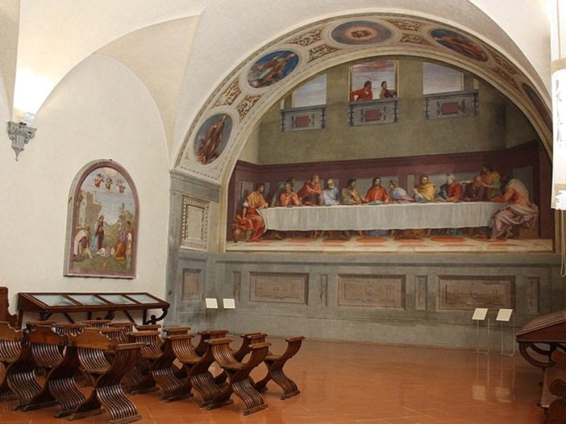 È lui l’artefice della sublime Ultima cena, affrescata nel 1526-1527 sulla parete di fondo del refettorio. E intorno alla Cena, che è il fulcro nobile e poetico del piccolo museo, campeggiano pale d’altare eseguite da artisti che appunto su Andrea si formarono. L'affresco, benché commissionato agli inizi della carriera dell'artista, fu maturato lentamente e fu completato tra il 1520 e il 1525, momento particolarmente felice nella produzione di Andrea del Sarto (1486-1530).