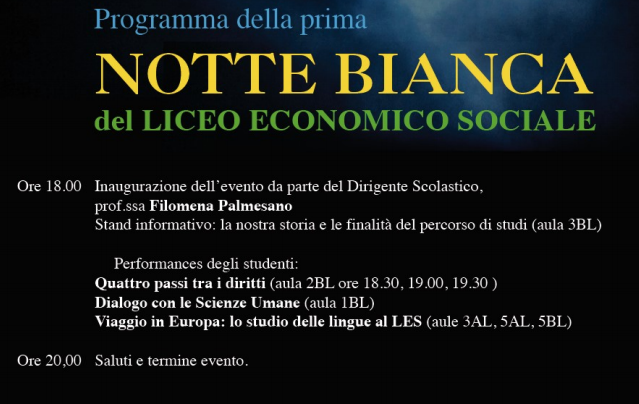 "Il Liceo "il Pontormo" di Empoli aderisce alla settimana dell'Educazione Economica e Finanziaria, promossa a livello nazionale dalla Rete dei Licei Economico Sociali, dando vita, venerdì 25 ottobre 2019, alla Notte Bianca dei Licei Economico Sociali.  L'evento in oggetto si svolgerà presso i locali dell'Istituto, via F.lli Rosselli 40 Empoli, dalle ore 18.00 alle ore 20.00, ed è aperto a tutta la comunità scolastica del territorio. "Si coglie, pertanto, l'occasione di invitare tutti alla manifestazione, in quanto importante momento di confronto e di condivisione su temi e problematiche centrali nella realtà attuale ed in quanto utile momento di conoscenza di questo indirizzo liceale" affermano dalla scuola.