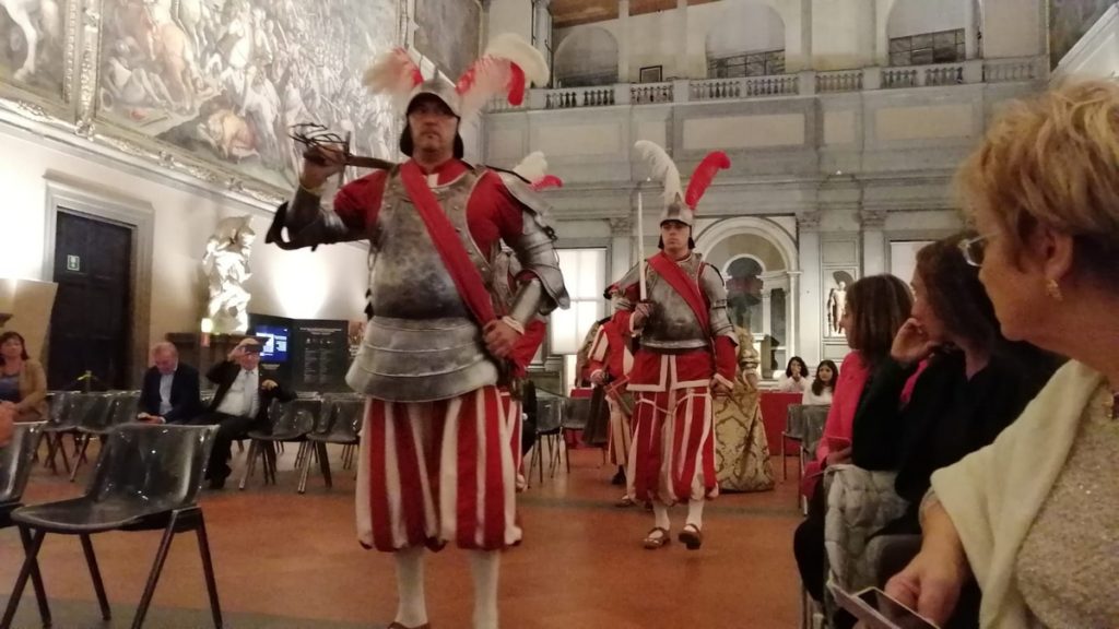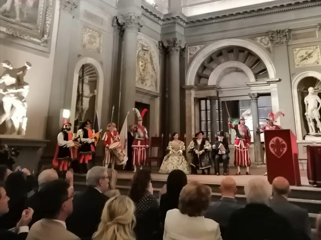 A fare gli onori di casa il consigliere comunale di Firenze Maria Federica Giuliani. Sul palco, annunciati da squilli di tromba, il presidente del Consiglio regionale Eugenio Giani, il sindaco di San Miniato, Simone Giglioli, l'assessore regionale Stefano Ciuoffo, il presidente della Fondazione San Miniato Promozione Delio Fiordispina.