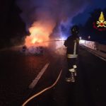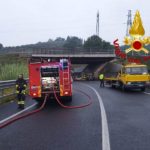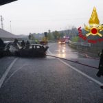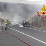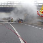 I Vigili del fuoco giunti sul posto con 3 automezzi e 9 unità hanno provveduto allo spegnimento della vettura in fiamme. Sono attualmente in corso le operazioni di messa in sicurezza della vettura alimentata a GPL e la bonifica del cavalcavia.