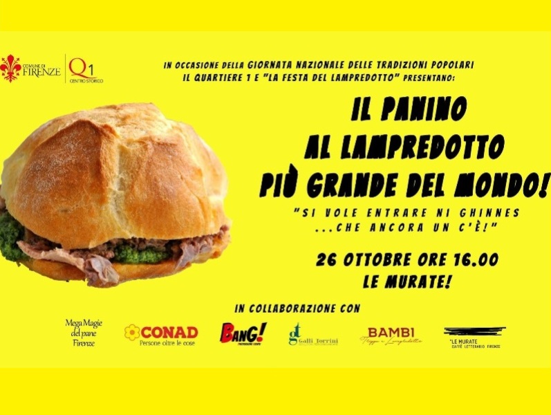 “Quando la nostra tradizione gastronomica si sposa con eventi come questo non possiamo che esserne al fianco - ha detto l’assessore alle Attività produttive Federico Gianassi, che sabato sarà alle Murate - Street food fiorentino per eccellenza, il panino con il lampredotto questa volta sfida se stesso con questo mega panino. Sarà una bella occasione per valorizzare uno dei nostri più gustosi piatti nella giornata dedicata alle tradizioni popolari”.