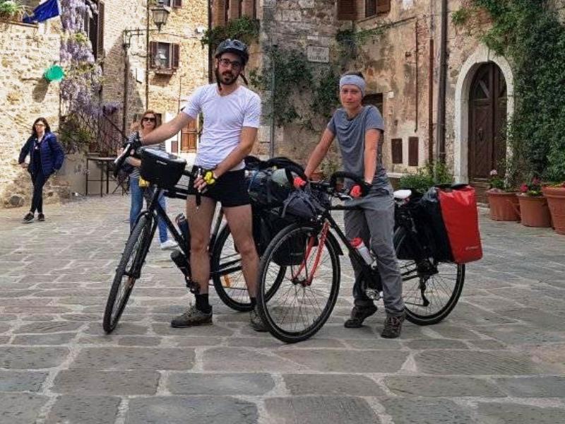 Si tratta di una prima volta? "In bici è la prima volta, anche se ci siamo addestrati quest'estate facendo quattrocento chilometri in Abruzzo. Siamo entrambi guide ambientali e grandi camminatori, però stavolta abbiamo optato per le due ruote". Michael ha esperienze nell'alpinismo, Ketty ha già fatto viaggi in bicicletta ma non così lunghi.