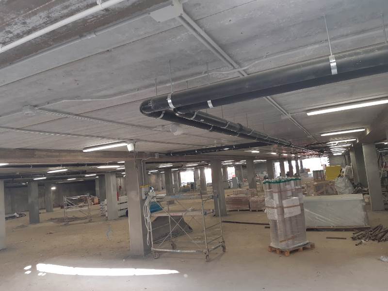 Al piano seminterrato è stato ricavato il parcheggio per i dipendenti con 90 posti auto.