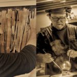 I piatti che lo chef Casentini ha deciso di creare per l’abbinamento con i quadri sono cubi di pollo nostrano con fonduta di formaggio pecorino a latte crudo e fondo di aglio nero di Voghiera.