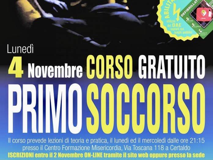 La data di inizio del corso di primo livello è fissata per lunedì 04 novembre 2019 alle ore 21.15 presso il centro formazione della Misericordia di Certaldo,in via Toscana n.118. Il corso avrà cadenza bisettimanale (lunedì e mercoledì) ed è gratuito ed aperto a tutti.
