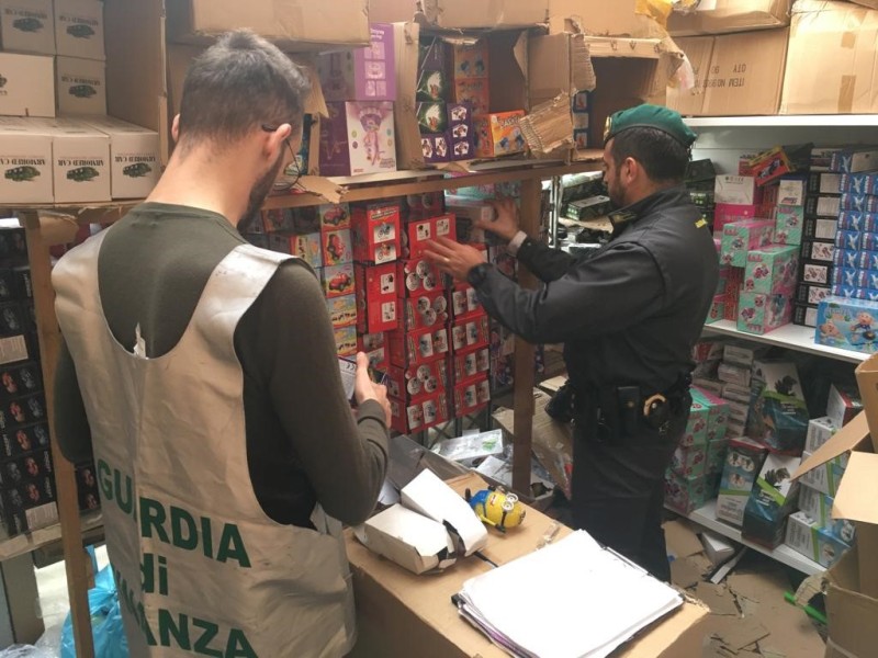 La merce, del valore commerciale di circa 100 mila euro, è stata sequestrata al termine della perquisizione eseguita dai finanzieri in un negozio di Via Vespucci, ove i militari hanno rinvenuto un “magazzino occulto”, il cui accesso era stato abilmente nascosto con una “parete a scomparsa”, all’interno del quale erano depositati decine di cartoni contenenti macchinine, peluches, maschere, pistole, modellini di moto, aerei e camion, fionde, bastoni colorati, dinosauri e torce, le cui componenti plastiche, al mero contatto, presentavano scarse caratteristiche di resistenza.