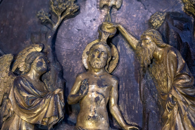 L’intervento di restauro è stato possibile grazie all’Opera di Santa Maria del Fiore che ne ha finanziato interamene il restauro, lo smontaggio, il trasporto e la collocazione nel museo. Con la Porta Sud si conclude un epocale ciclo di restauri, diretti ed eseguiti dall’Opificio delle Pietre Dure di Firenze, che ha riguardato le tre monumentali Porte del Battistero di Firenze: la Porta del Paradiso e la Porta Nord di Lorenzo Ghiberti e la Porta Sud opera di Andrea Pisano.