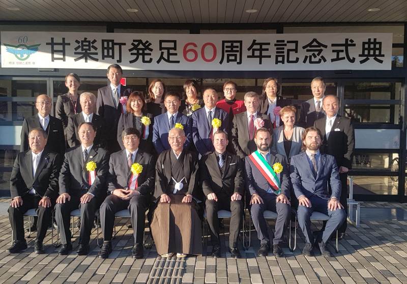 Si stanno svolgendo in queste ore a Kanramachi le celebrazioni per i 60 anni della costituzione del Comune giapponese, gemellato con Certaldo fin dal 1983. E proprio in virtù di questo lungo gemellaggio, che dura da ben 36 anni, il sindaco Giacomo Cucini, il consigliere con delega ai gemellaggi Lido Orsi, e l’Associazione per gli scambi interculturali, sono stati menzionati nel premio ricevuto oggi dalla municipalità di Kanramachi, dalle mani del sindaco Shoici Shigehara: un attestato di ringraziamento per il contributo dato alla crescita culturale della città. Nella delegazione che ha ricevuto il premio anche l’assessore Jacopo Masini.