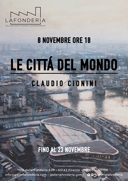 Inaugura a Firenze, negli spazi della Galleria d’arte la Fonderia, la mostra personale di Claudio Cionini “Le città del Mondo”, venerdì 8 novembre alle ore 18, alla presenza dell’artista e del giornalista e critico d’arte Riccardo Ferrucci.