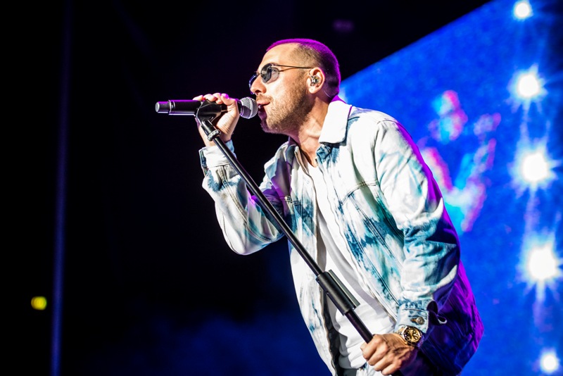 In un momento di respiro e riflessione, viene proiettato il video che testimonia il lavoro dei volontari di Open Arms. Lo show riprende con un set acustico e intimo su “Mamma Roma”, “Vorrei portarti via”, “Le parole più grandi”. Da cantare a squarciagola “Le luci della città”, che prende vita sulle immagini di una Roma decadente vista dall’alto nel buio di un giorno di festa, quasi come a volerla guardare da lontano. Il terzo medley della set list si apre con l’autotune e sintetizzatori di “Occhiali scuri” per poi seguire con il pezzo più rock del live “Invece no”. Atmosfera e luci sospese, iniziano le note di “Aeroplani”, ballad atipica ed underground che aspetta a chiudere lo spettacolo.